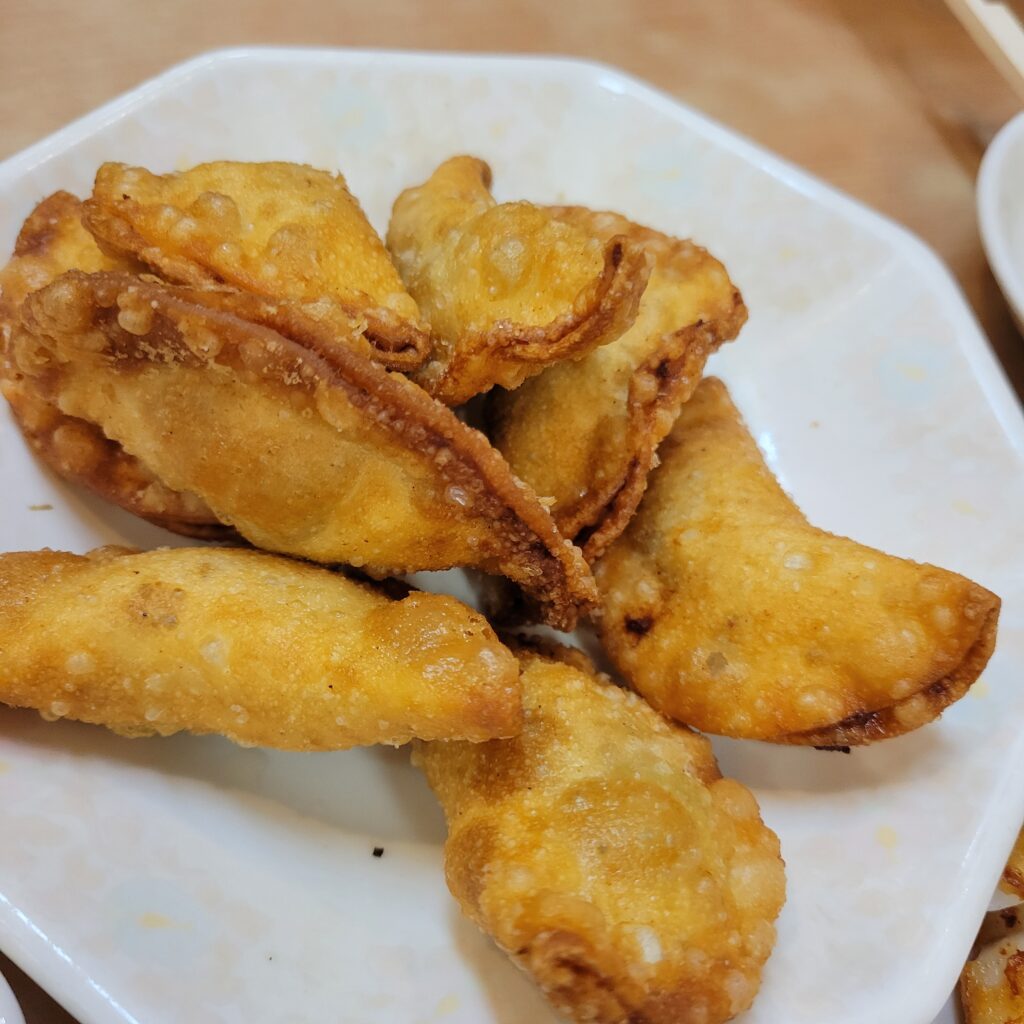 今回は自家製の揚げギョーザを注文しました。外はカリッと香ばしく、中はジューシーで具材の旨みがぎっしり詰まっています。焼き餃子も人気ですが、今回は揚げで楽しんでみました。