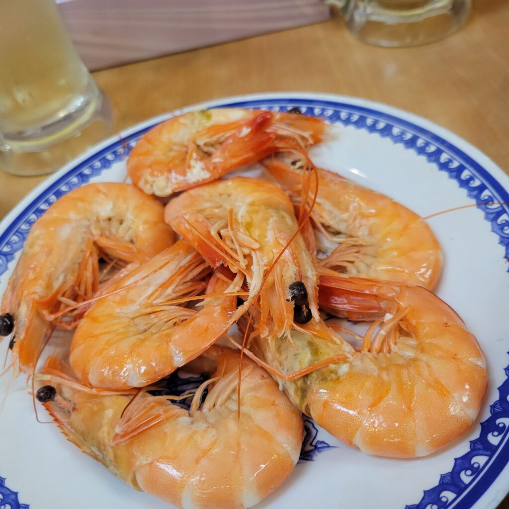 お次はエビの塩ゆで。ぷりっとした食感と塩のシンプルな味付けで、素材の旨みを存分に楽しめました。揚げ物や野菜炒めの後にさっぱりといただけて、口の中がリフレッシュされます。