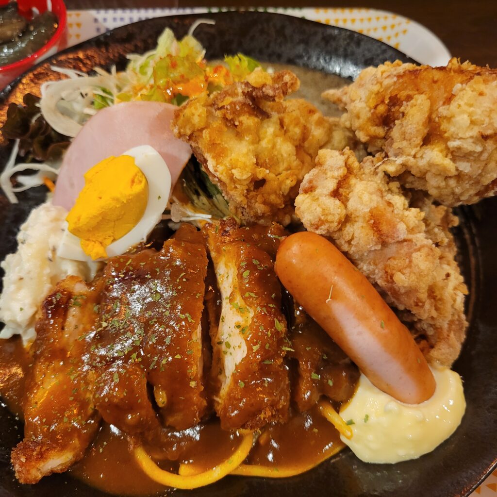 チキンカツはしっかり1枚サイズ。唐揚げも3個ついていて、その1個がかなり大きめ!