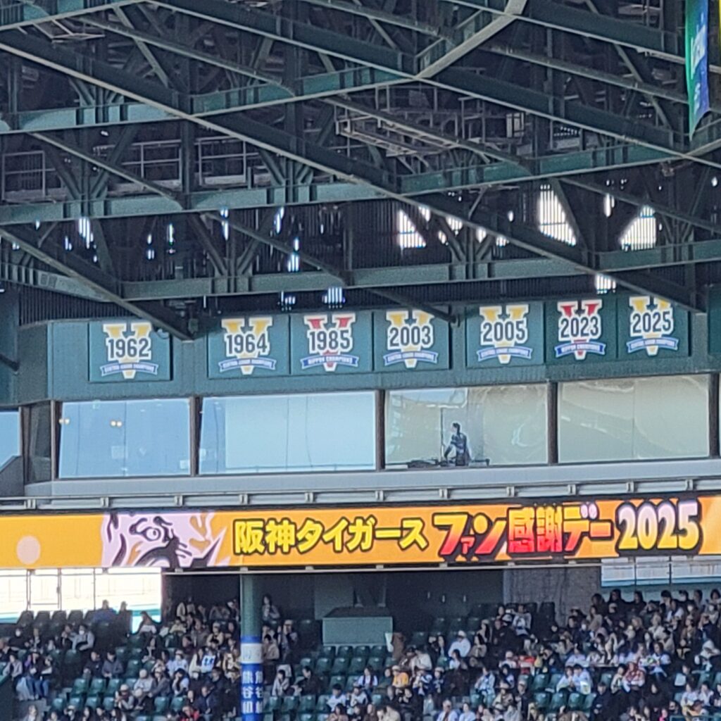 特に今年は、優勝記念の演出としてバックスクリーン後方に「V2025」の表示が追加され、会場全体が一層お祝いムードに包まれていました。ファン感での選手とのふれあいやレジェンドチームとの夢の対決も、今年の優勝を祝う特別な雰囲気の中で一層輝いて見えました。
