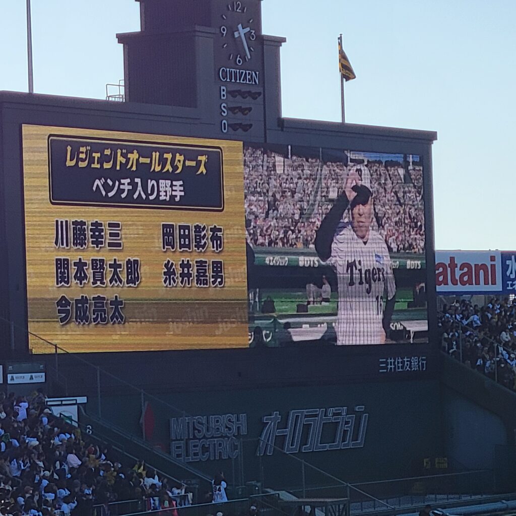名前が読み上げられるたびに球場がどよめき、特に川藤さんの紹介時は一段と大きな歓声が。岡田監督が“選手として”紹介されるというレア感もあって、会場全体が一気に盛り上がりました。糸井さんや今成さんの存在感も抜群で、ベンチの雰囲気は最初から明るく、まるで同窓会のような楽しさが伝わってきました。
