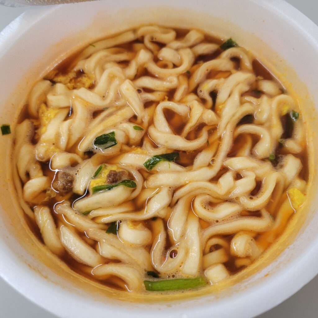 辛いもの好きの私としては、この「ピリ辛×濃厚コク」の組み合わせはまさに鉄板。 食べ進めるうちにじんわりと汗をかくような感覚があり、これぞ「冬に食べたいカップヌードル」だと実感しました。